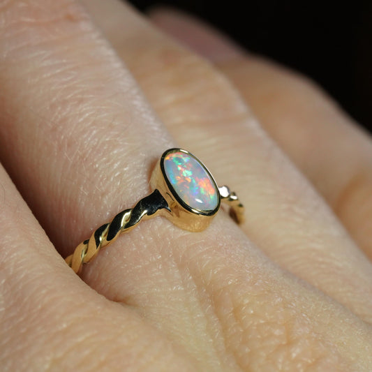 Australian Opal Ring | Solid 14k Gold | Size 8
