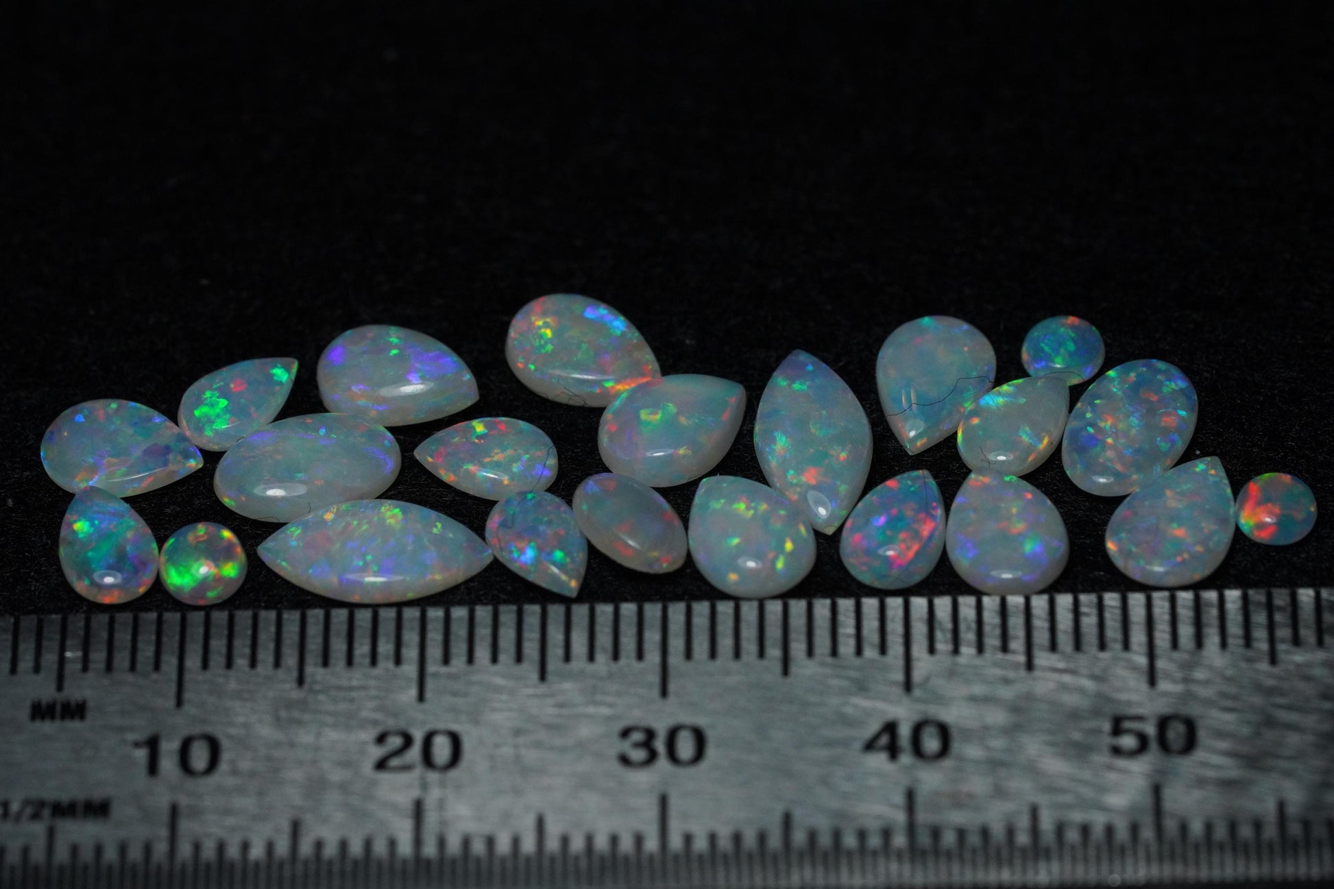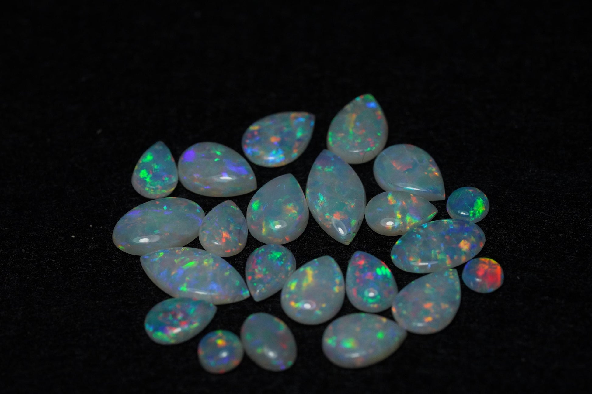 22x Solid Australian Opals ready to be set into jewellery.