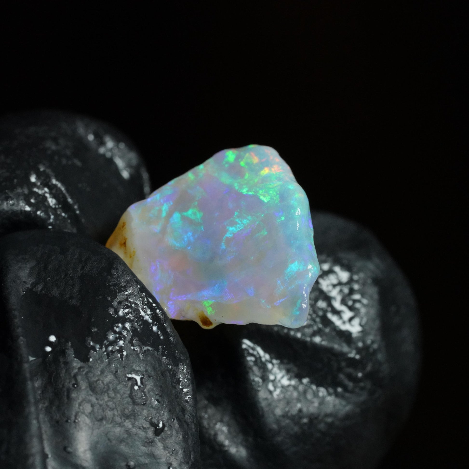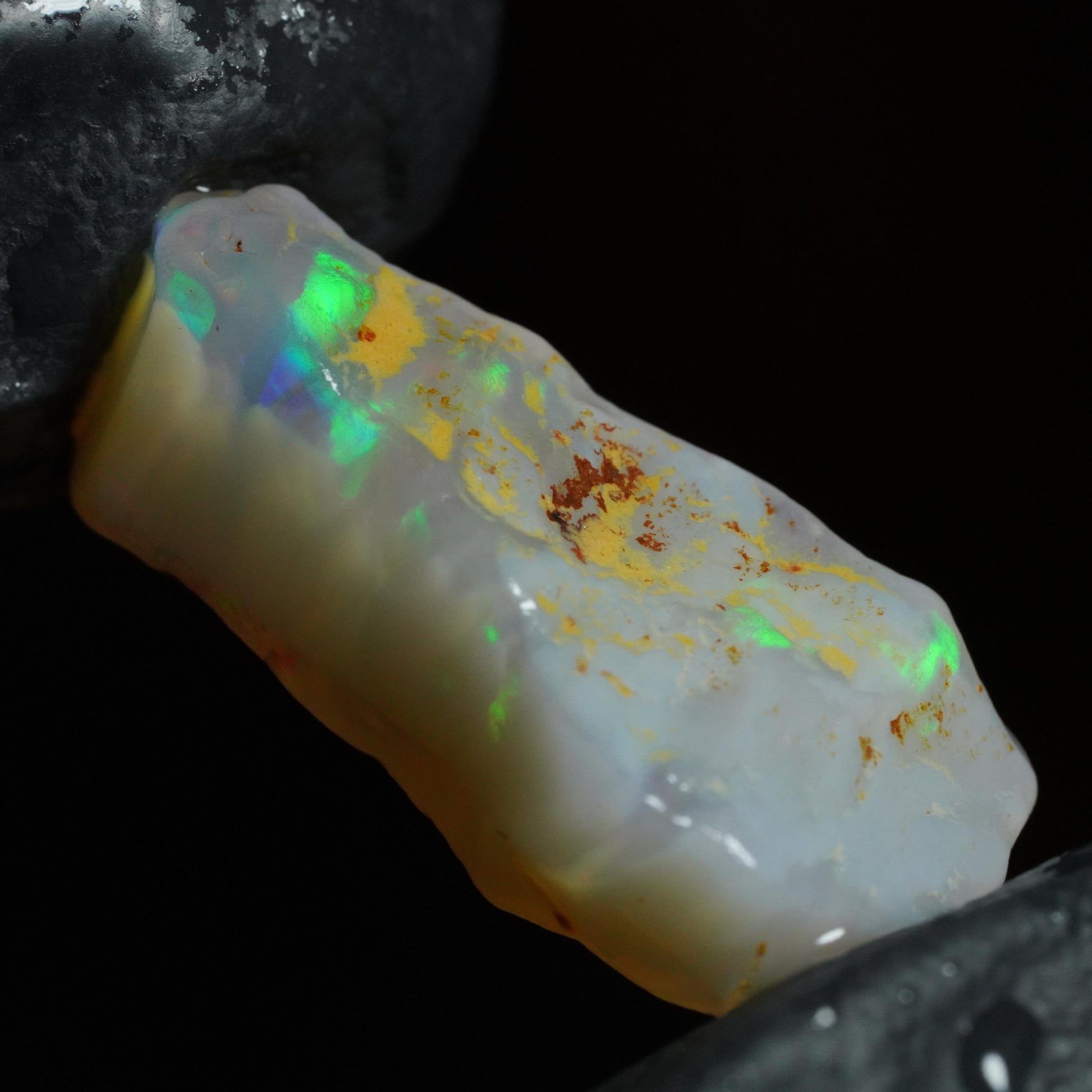 This rough opal is in its raw, unworked state. The rough displays visible flashes of colour that hint at the potential beneath the surface.